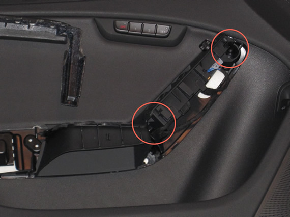 The next step is to remove the black trim that attaches directly below the door handle/switches.