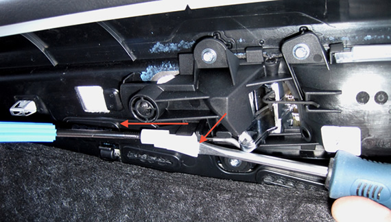 The next step is to remove the door handle cable. You will need a slot screwdriver to release the clip.This is the last step to remove the door panel.