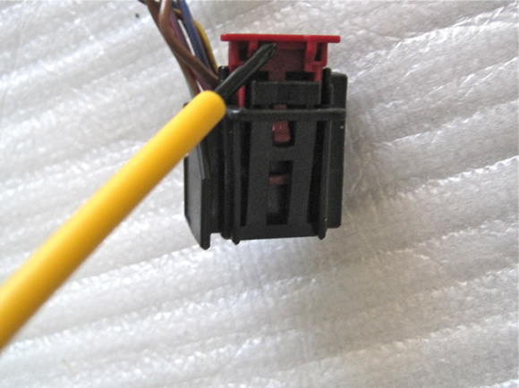 The back door plug releases a little different. To release the plug you must raise the red tab. This locks the plug into place