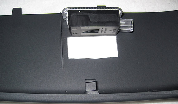 First step is to approximate where you want the light to be and where it can be mounted without hitting any door skin parts. Although you can do some modifications to the door panel to give you more options for mounting the light I chose to work with what I had. Once I had an idea of where the light would fit I taped down the light backing to the panel and checked for clearance.