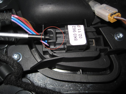 Now the easiest way to unplug any connector is to use a small screwdriver or something to hold down the release. The same stands true for these connectors. Note that all 4 wires are in place already which is why this is just a simple switch replacement to add unlock toyour back doors.