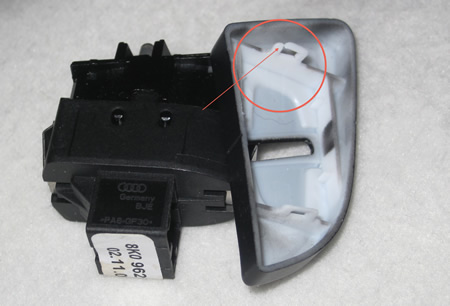 You have 2 options here. If you are upgrading your current locks you can do this the easy way or still easy but time consuming way. The door locks are designed to come out the front of the door panel. However the clips are very tight and Audi designed them to be pushed out from behind. If you don't care about the old switches you can simply take a screw driver or anything to get the cover off and pry the switch cover off from the front. You can then pull the switch out with a pair of needle nose pliers or anything else you can grab the switch with.
