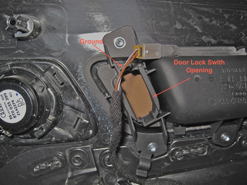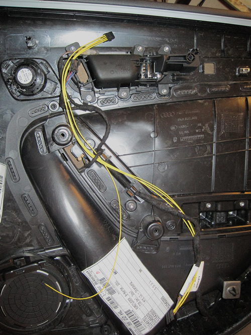 Since you are working with wires all the same colour you have to be careful to hook them up one at a time. Now as luck would have it, the wires are long enough without cutting or extending to work for the back doors. If your doing a front door you may have to extend the wire. At the time of writing I didn't have a front door panel off to verify.