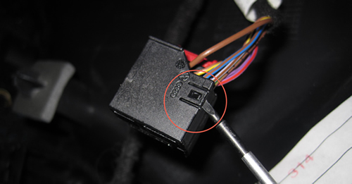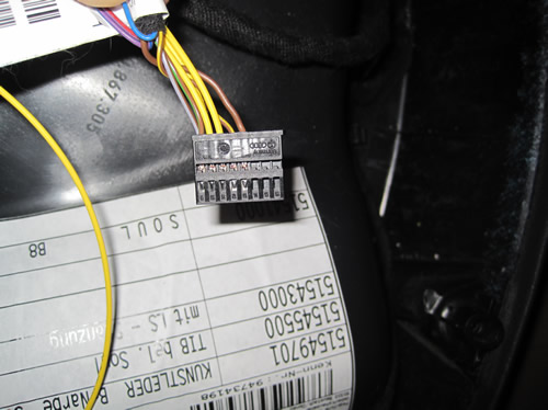 Here are a couple of pictures of the wires inserted into the factory plug the loose wire you see in the pictures is the ground wire not yet terminated. Since I didn't actually do this install I didn't complete any permanent wiring.