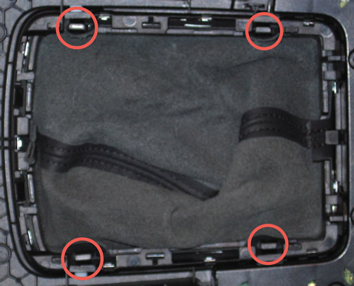 There are 4 clips holding the bottom of the boot to the MMI controls. The boot is tight and the clips just clip over the bottom of the controls to hold it in place. Your going to take your trim tool or equivalent and just pry the boot up and out on each side.