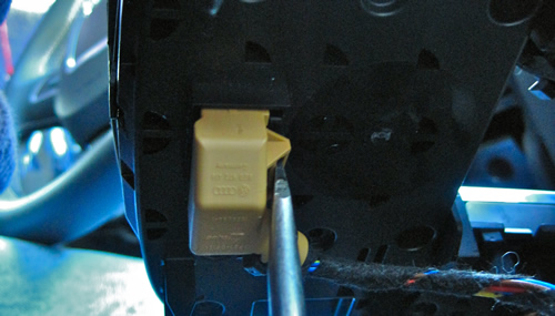 Now if you are going to need to use the car prior to completing this mod you need to do a few things. Remove the emergency brake button and plug it back in and make sure you leave your MMI selected to radio so you have something to listen to. Other than that you can use the key in the dash if you have push start to start the car and you can drive without the controls in the car without any risk of problems.
