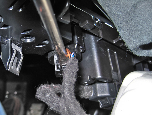 The first plug you should release is the Start/Stop button. This harness is shorter than the others so you have to release it first which will allow you more room to work on the others.