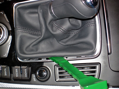 Start by releasing the shifter boot from the MMI controls. Although I have not performed this on an automatic the procedure is the same except put the transmission in the S position before you start with an automatic.