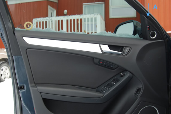 To remove the tweeter trim you simply pop it off from the top with a screwdriver. It will come off with very little effort. Place the screwdriver in at the top of the trim at position A and just pop it off.